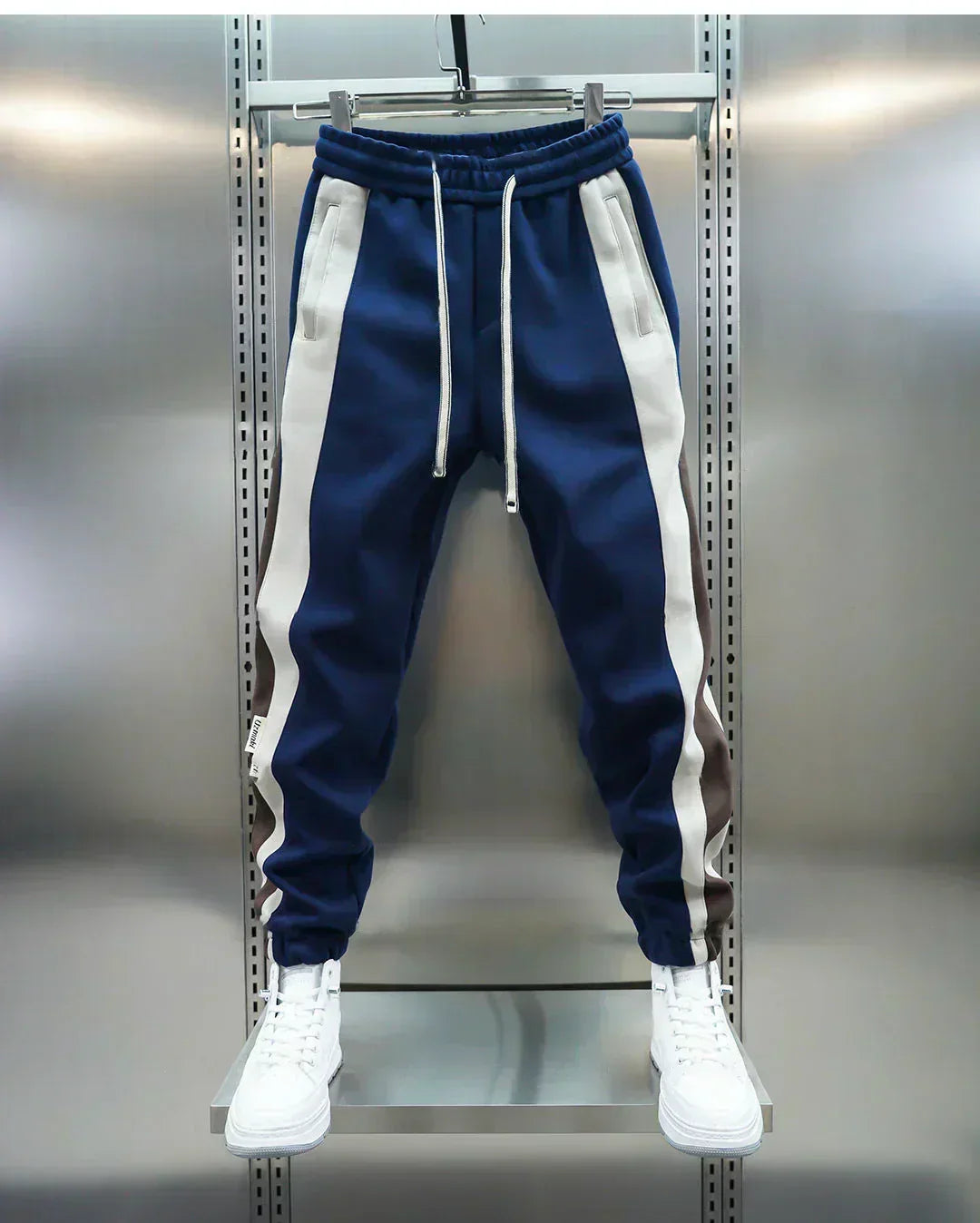 Urban chic ontmoet Italiaanse nonchalance - de Lucas broek met contrasterende strepen is meer dan alleen een trend: het is dé must-have voor het nieuwe seizoen. Perfect voor mannen die in het dagelijks leven niet willen kiezen tussen comfort en stijl. Met zijn moderne lijnen en opvallende streepdetail richt Lucas zich op subtiele elegantie en een dynamische uitstraling - of het nu op kantoor is, tijdens een wandeling door de stad of 's avonds met vrienden.