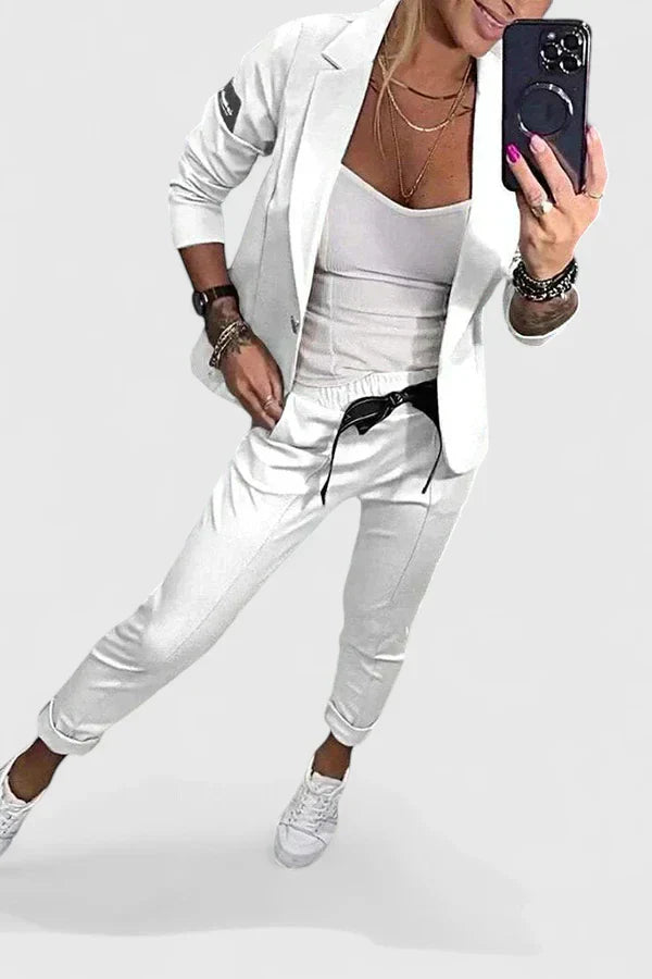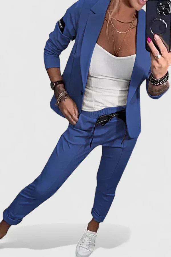 Het Alina Modern Tailored Pak combineert elegantie met comfort voor een krachtige en veelzijdige uitstraling. Met de gestructureerde blazer en relaxte broek is dit de ideale keuze voor zakelijke afspraken, casual stadswandelingen of avonduitjes. Een tijdloos setje dat stijl en zelfvertrouwen uitstraalt.