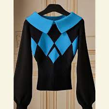 De Mirthe™ | Gebreide Argyle Trui tilt mode naar een nieuw niveau met zijn gedurfde roze-zwarte ruitpatroon en opvallende kraag. Dankzij het getailleerde silhouet en de zachte gebreide stof combineert deze trui moeiteloos stijl en comfort, perfect voor elke gelegenheid.